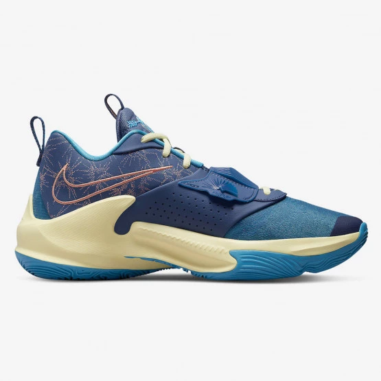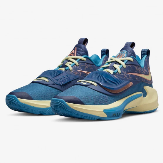 Το τρομακτικά δυναμικό παιχνίδι του Γιάννη συνδυάζει τεράστια βήματα, euro step που αποπροσανατολίζουν τους αντιπάλους, αλλά και την ικανότητα να παίζει σε οποιαδήποτε θέση, ξεπερνώντας κάθε αντίπαλο που βρίσκει στον δρόμο του προς το καλάθι.Το Zoom Freak 3 επιτρέπει στον Γιάννη να αξιοποιήσει στον μέγιστο βαθμό της δεξιότητές του και να ενισχύει την επίδρασή του στον αγώνα.Η αντικραδασμική προστασία με επιστροφή ενέργειας, η συγκράτηση στις πλευρικές κινήσεις και η πρόσφυση σε πολλές κατευθύνσεις βοηθούν τους πολυδιάστατους παίκτες όπως ο Γιάννης να κάνουν ελιγμούς και να διατηρούν τον έλεγχο.
