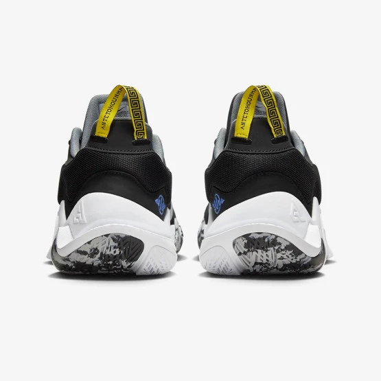 • Το μοτίβο του κεραυνού σε κίτρινο χρώμα και οι λεπτομέρειες του χαοτικού ουρανού στην εξωτερική σόλα αποτελούν τον συνδετικό κρίκο ανάμεσα στον Γιάννη με τον Δία, τον βασιλιά των θεών στην αρχαία ελληνική μυθολογία.